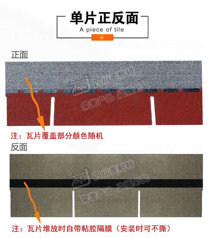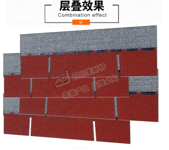 本款产品颜色丰富,立体感强,一般适用于广泛应用于高档别墅、高档小区、政府安置工程,学校工程等工程,产品可自由裁剪,能成功覆盖于不同形状和不同基层的屋顶。适用屋面坡度从15°到90°不同建筑。