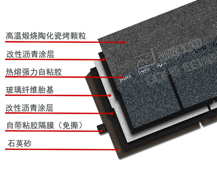 本款产品颜色丰富,立体感强,一般适用于广泛应用于高档别墅、高档小区、政府安置工程,学校工程等工程,产品可自由裁剪,能成功覆盖于不同形状和不同基层的屋顶。适用屋面坡度从15°到90°不同建筑。