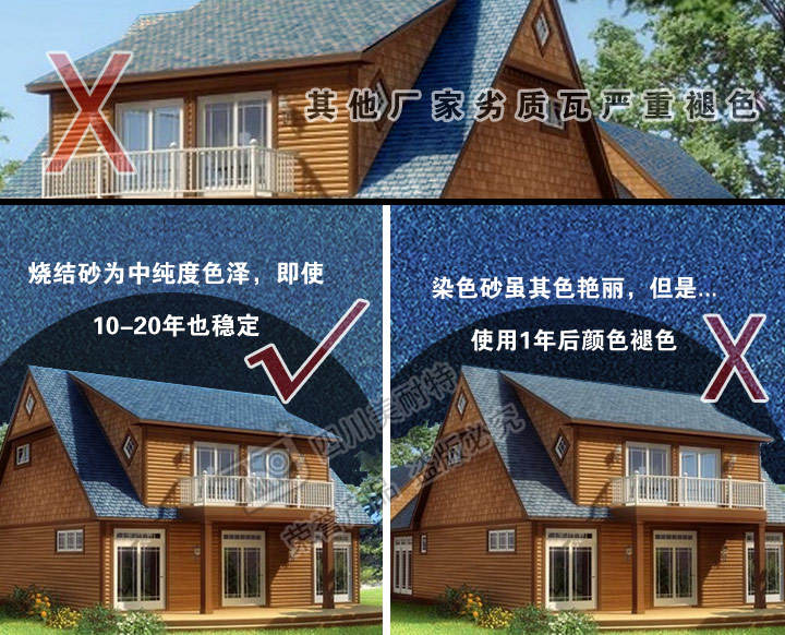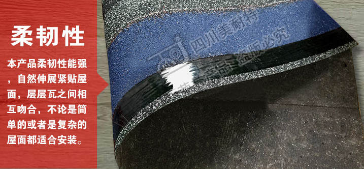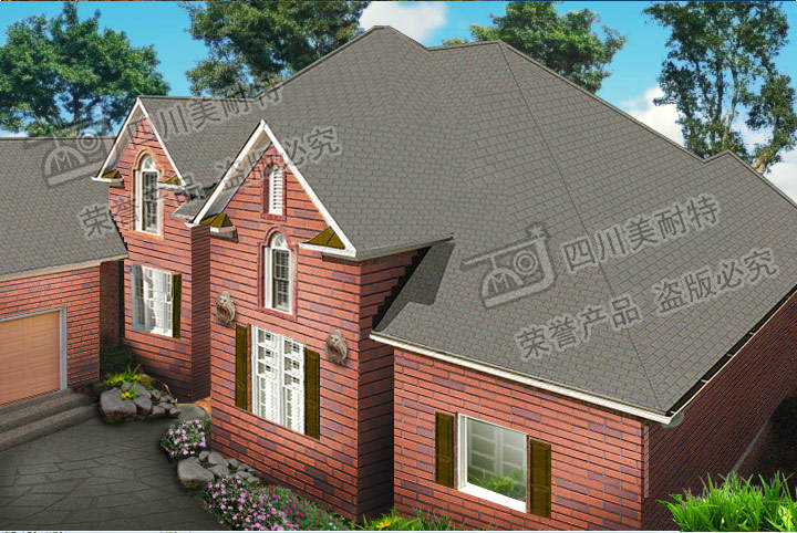 本款产品颜色丰富,一般适用于广泛应用于高档别墅、高档小区等工程,产品可自由裁剪,能成功覆盖于不同形状和不 同基层的屋顶。适用屋面坡度从15°到90°不同建筑。