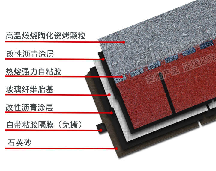 本款产品颜色丰富,立体感强,一般适用于广泛应用于高档别墅、高档小区、政府安置工程,学校工程等工程,产品可自由裁剪,能成功覆盖于不同形状和不同基层的屋顶。适用屋面坡度从15°到90°不同建筑。