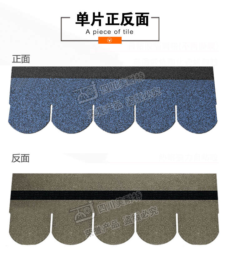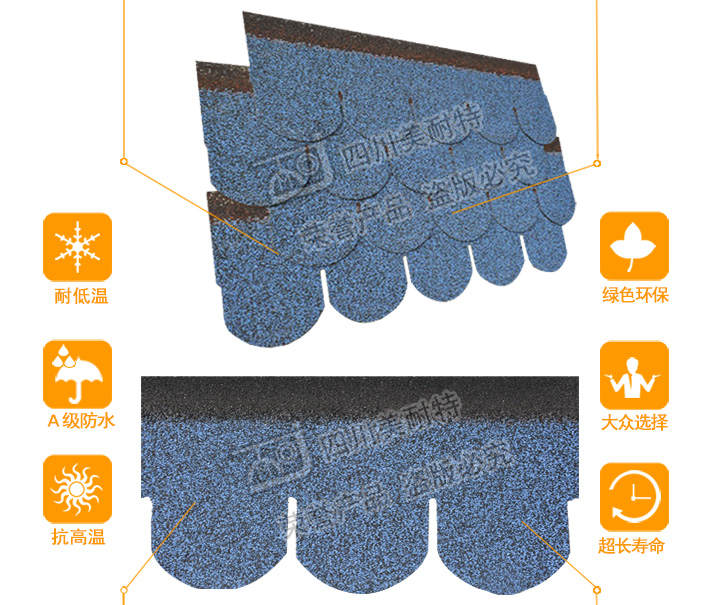 产品名称:鱼鳞型 产品规格:单层 产品颜色:宝石蓝 长度(mm):1000mm±3 mm 包装:每包21片
