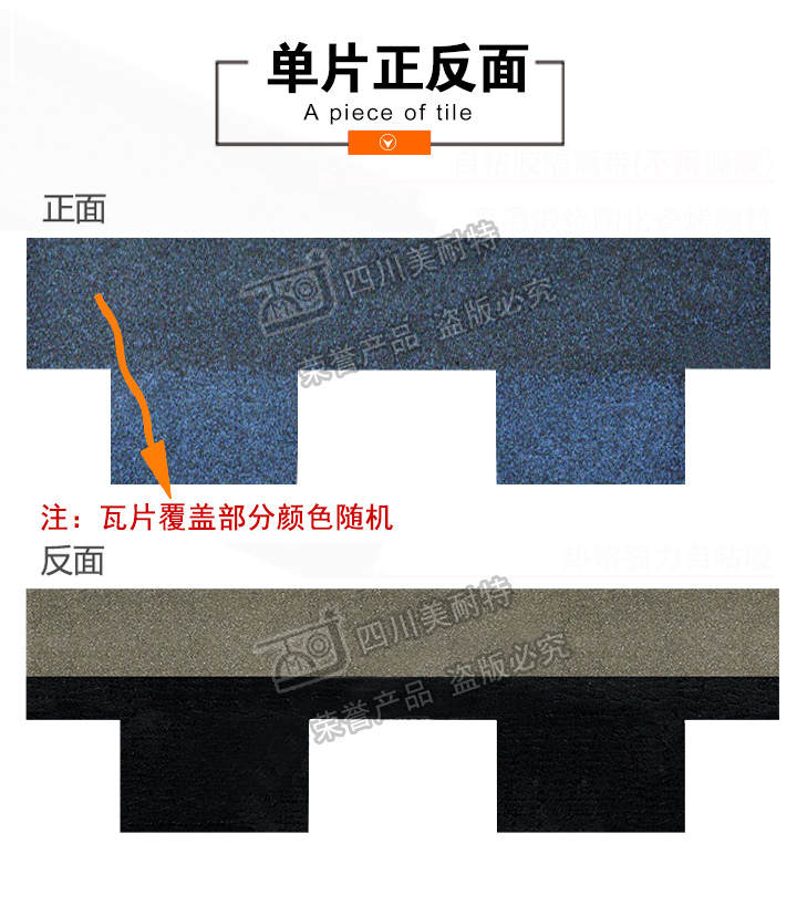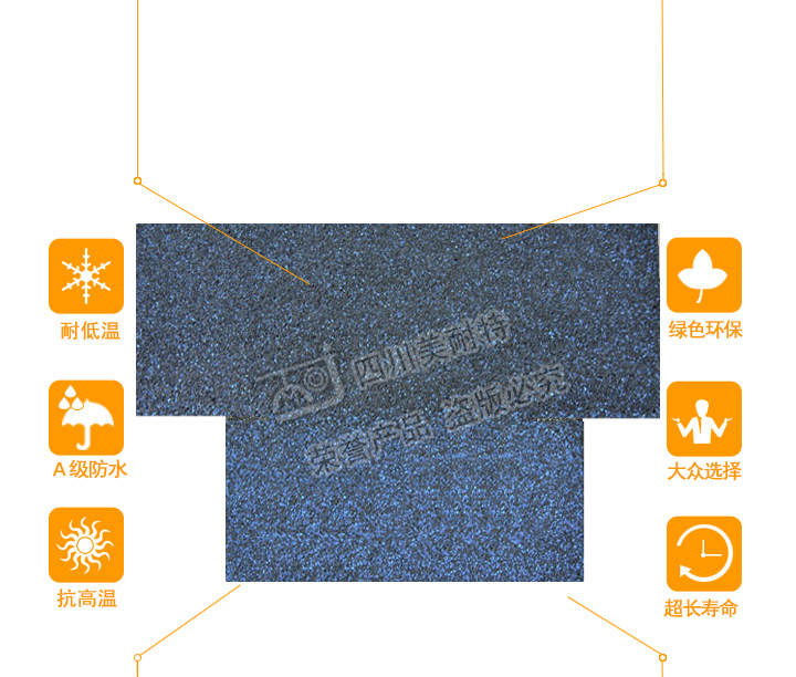 本款产品颜色丰富,一般适用于广泛应用于高档别墅、高档小区、政府安置工程,学校工程等工程,产品可自由裁剪,能成功覆盖于不同形状和不同基层的屋顶。适用屋面坡度从15°到90°不同建筑。