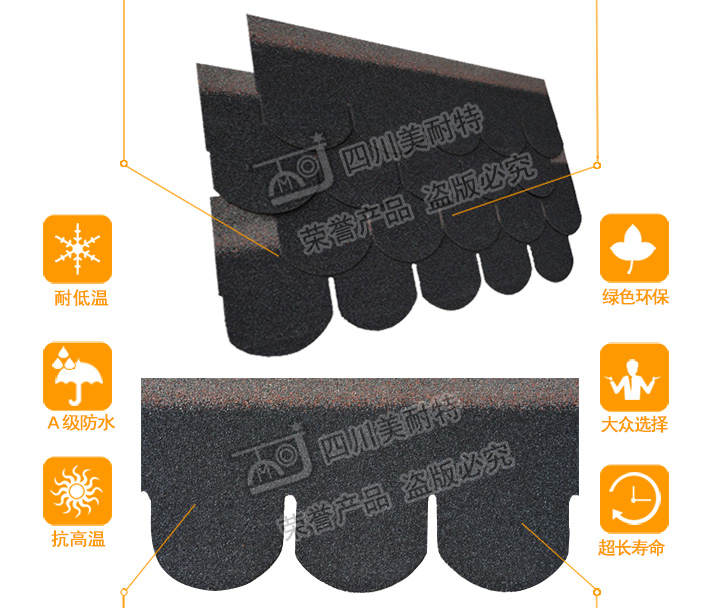 产品名称:鱼鳞型 产品规格:单层 产品颜色:古黑色 长度(mm):1000mm±3 mm 包装:每包21片